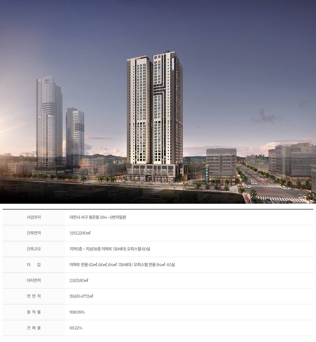 스위첸이 선보이는 대전 도심 주상복합 총 810세대의 아파트와 오피스텔이 결합된 대단지 아파트 510세대와 오피스텔 300실로 구성된 대규모 주상복합단지로 주거와 상업이 공존하는 원스톱 라이프를 구현합니다. 대광건영과 KCC건설의 컨소시엄 시너지 신뢰할 수 있는 브랜드가 선사하는 고품격 주거 환경 주택 전문 건설사의 시공 노하우와 스위첸 브랜드의 만남으로 안정성과 뛰어난 상품성을 동시에 확보했습니다. 대전 1호선, 2호선(예정) 더블 역세권 용두역(1호선)과 트램(2호선 예정) 환승의 편리한 교통 대전지하철 1호선 용두역을 비롯해 트램 2호선(예정) 환승이 가능해 대전 도심 전역을 빠르게 연결하는 최적의 교통망을 갖췄습니다. 최고 49층의 압도적인 스카이뷰 대전을 내려다보는 랜드마크급 주상복합의 위상 지상 최고 49층 높이로 조성되어 대전의 새로운 스카이라인을 형성하며 우수한 조망권(일부)을 선사합니다. 충남대 병원, 코스트코 등 생활 편의 가까이에서 누리는 대형 의료 시설 및 쇼핑 인프라 충남대학교병원, 코스트코 등 대형 의료 및 쇼핑 시설이 인접하여 최상의 주거 편의와 풍부한 인프라를 이용할 수 있습니다. 전용 84㎡ 중심의 인기 평형 구성 실수요자 선호도 높은 3~4인 가구 최적화 평면 주거 만족도가 높은 전용 84㎡ 위주로 구성되어 채광과 통풍을 고려한 혁신적인 평면 설계를 적용했습니다. 쾌적한 내부 커뮤니티와 단지 상가 단지 안에서 모든 것을 해결하는 주상복합의 장점 입주민 전용 고급 커뮤니티 시설과 함께 단지 내 상업시설을 통해 편리한 생활을 누릴 수 있습니다.
